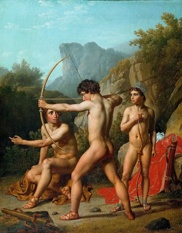 Christoffer Wilhelm Eckersberg (Dania, 1783-1853), Trzej spartańscy chłopcy ćwiczą łucznictwo