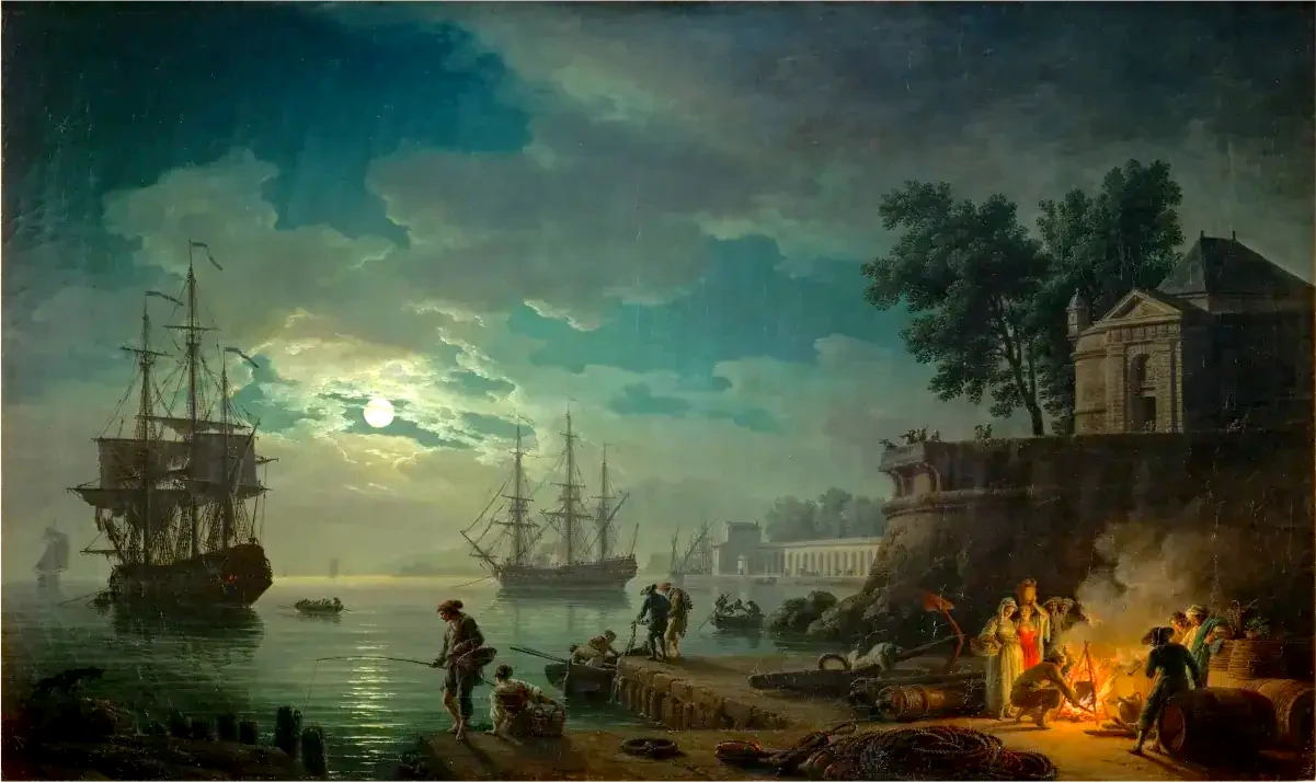 Vernet Claude Joseph (Francja, 1714-1789), Morski port o północy, 1771